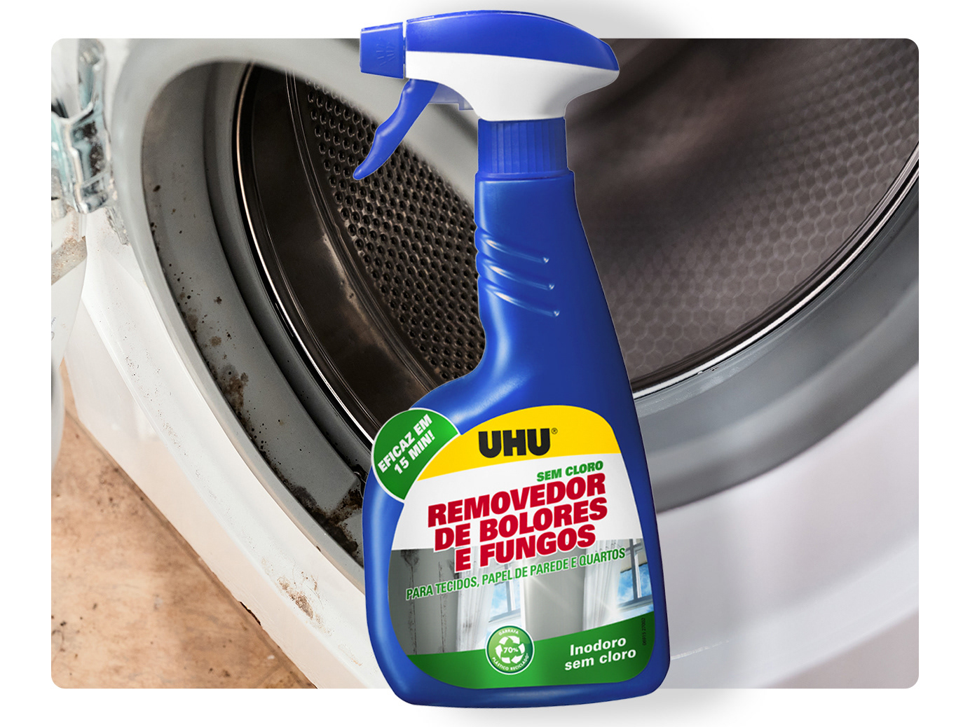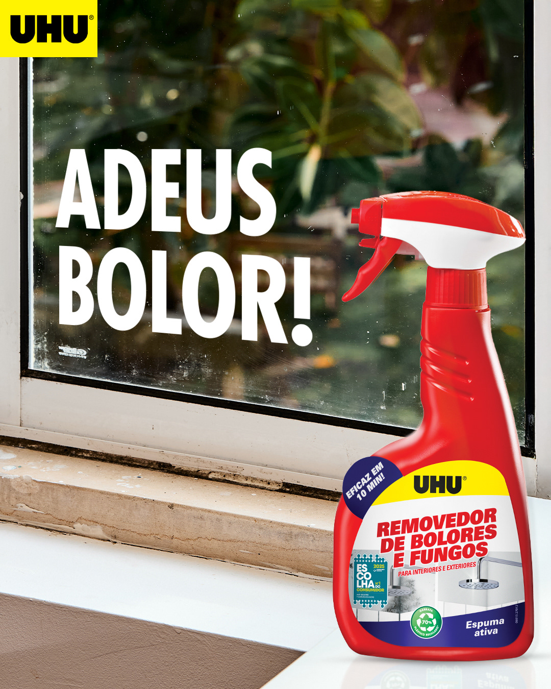 UHU Removedor de Bolores e Fungos is a leading Portuguese-market spray thateliminates mold from walls, ceilings, windows, baseboards and fabrics.